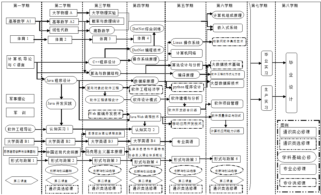 面向对象的软件工程、软件质量保证与测试、UML建模技术、软件项目管理、软件设计模式、编译原理、计算机操作系统、数据库原理、计算机网络、Java程序设计、Java Web编程技术等。