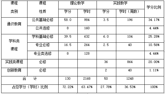 具有学籍的学生,德育、智育、体育成绩合格,在规定学习年限内修满培养计划规定的必修课、选修课及各种实践教学环节,获得总学分不少于180学分,其中:通识教育必修课程63.5学分,公共选修课程8学分;学科基础课程必修54.5学分;专业课程必修44学分,选修不少于8学分;创新教育2学分。