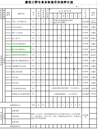 专业认知实习、金工实习、电子工艺训练、微机原理及接口技术课程设计、电子技术课程设计、通信电子线路课程设计、通信原理课程设计、通信系统仿真训练、信号处理课程设计、无线通信系统综合训练、毕业设计。