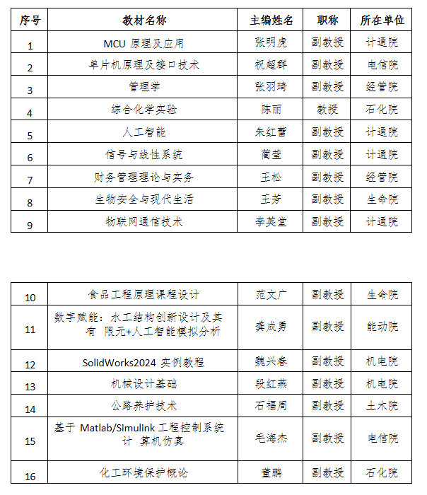 为深化高校教育改革,进一步加强我校教材建设,确保高质量教材进课堂,鼓励教师做好教材编写工作,根据《关于申报兰州理工大学2024年度红柳校级规划教材的通知》(兰理工教字[2024]51 号),经学校教学指导委员会评选推荐,教务处处务会讨论审核,学校教材建设委员会审议,校长办公会议研究决定,拟立项《Cost and Managerial Accounting》等 10部为红柳重点校级规划教材,《MCU 原理及应用》等16部为红柳一般校级规划教材。根据《a片网