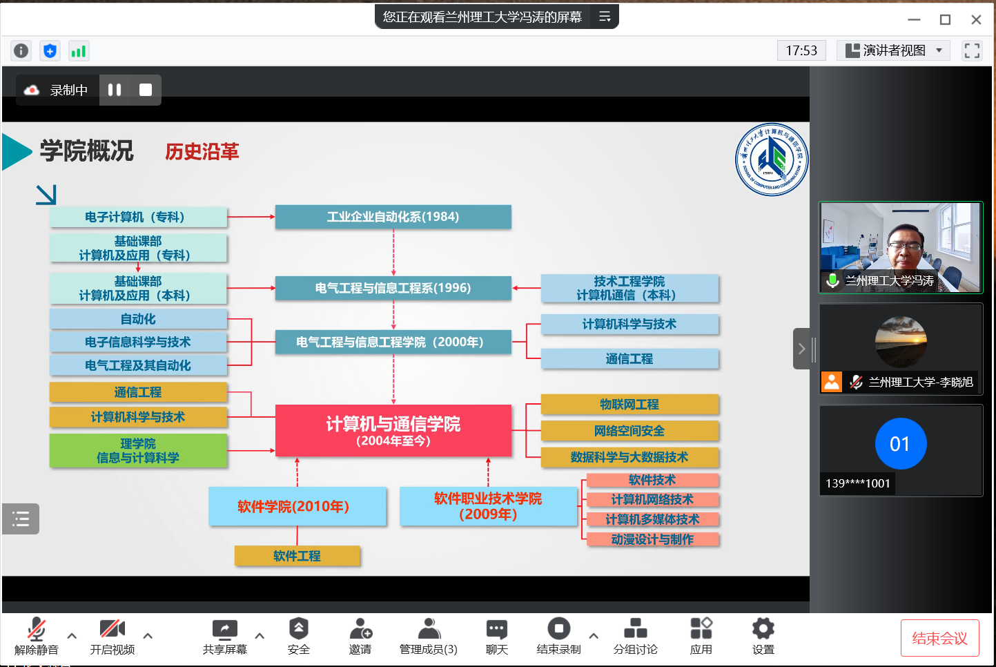招生研究生河西a片网招生宣讲会成功举办,会议由河西a片网吴建军院长主持,由a片网冯涛教授主讲,参会人员还有李晓旭教授,以及河西a片网的计算机科学与技术、网络工程专业的师生共100余人参会。会议通过腾讯会议在线方式开展。