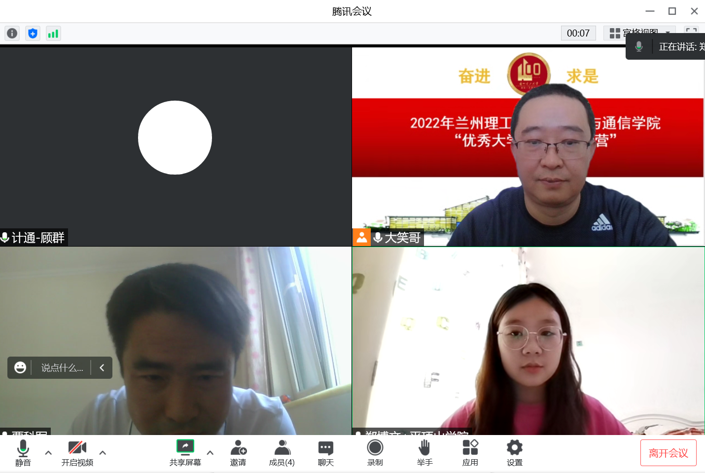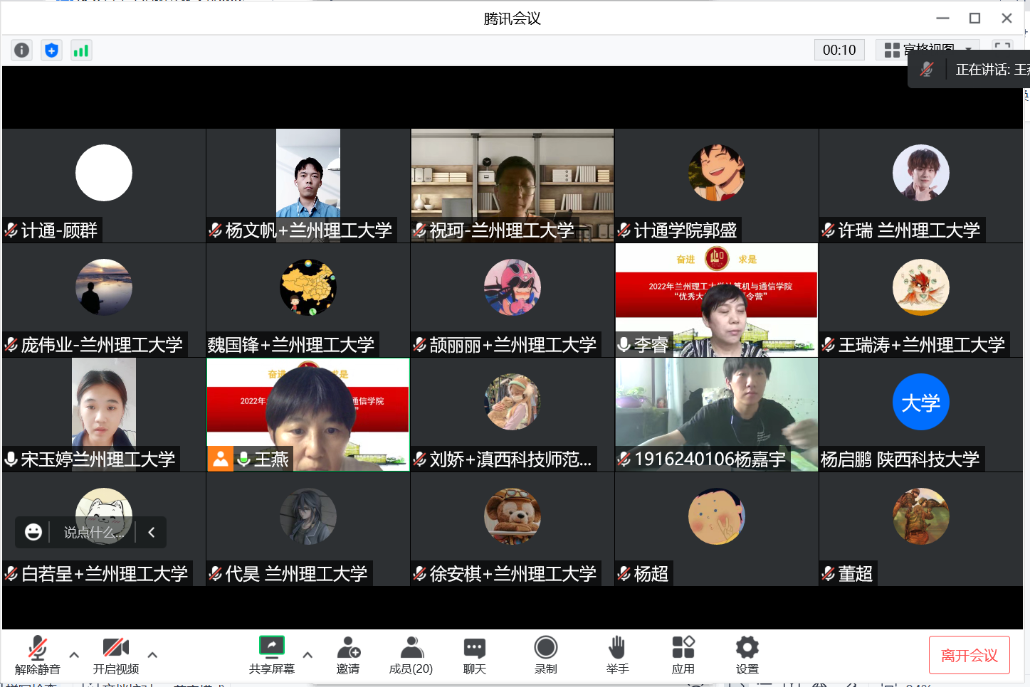 院长冯涛教授、副院长年福忠教授、赵付青教授、王惠琴教授、顾群副教授和来自9所不同院校的56名营员线上参加了开营仪式。