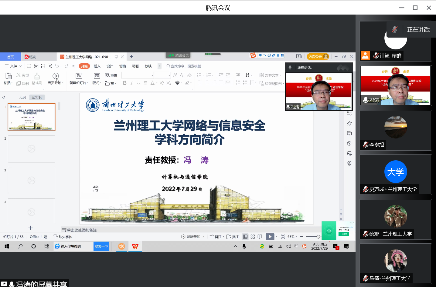 开营仪式上,网络与信息安全学科负责人冯涛教授、复杂系统智能信息处理学科负责人年福忠教授、智能制造与工业互联网学科负责人赵付青教授、宽带无线理论与信息处理学科负责人王惠琴教授分别对各自学科研究方向、学科方向成员、学科特色、人才培养等方面进行介绍。