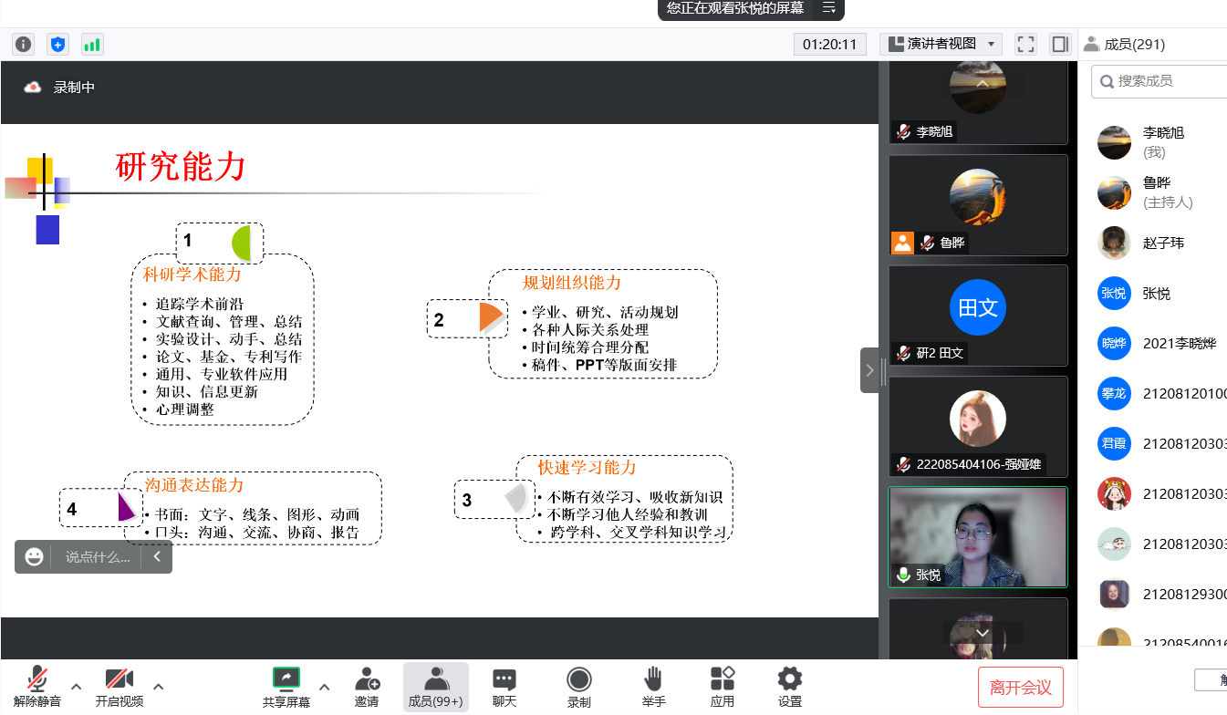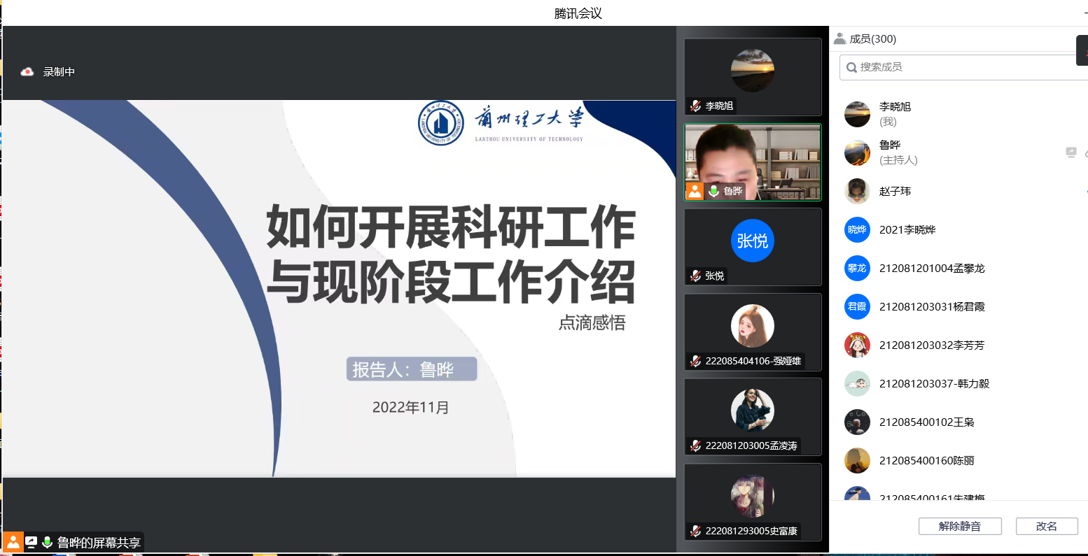 在腾讯会议上举办了面向研究生的学术交流报告会,特邀鲁晔、张悦两位博士做交流报告。会议由李晓旭副院长主持。a片网在疫情期间特此召开此次学术活动,旨在让同学们学会思考,保持良好的心态,身心愉悦的进行学习、科研。