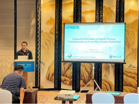 曹明华教授受邀作了题为《Enhanced Performance of Optical Wireless Communications via Faster-than-Nyquist Technology》的特邀报告;王惠琴教授和张留堡同学作了题为《BER Performance Analysis of O-OFDM-IM System Under Non-ideal Conditions》的口头报告;赵嘉晨同学在空间通信、导航和跟踪分会场作了题为《An improved target detection algorithm of Lidar point cloud in networked vehicles》的口头报告报告;王瑞同学作了题为《An End-to-End Autoencoder For FSO System Under Unknown CSI Scenarios》的海报展示,并回答了专家学者和同学们的提问。