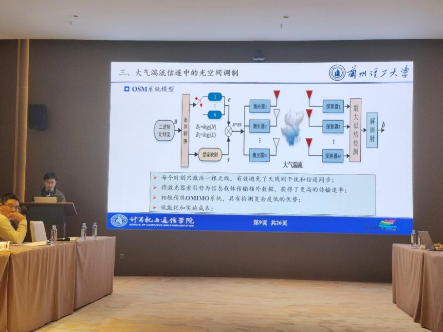 教授王惠琴受邀参会,由王真和周伟煜两位同学代表参加,会议上,王真同学作了题为《大气信道下激光信号的传输特性及其空间调制》的学术报告,并与现场的专家和同学们做了深入交流。