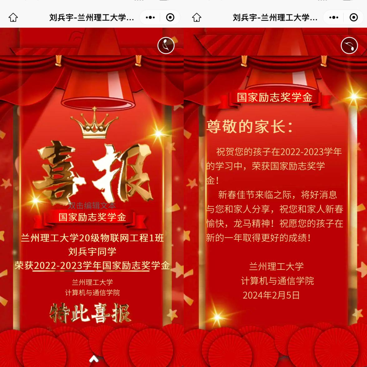 (a片网为学生制作的国家奖学金的电子版喜报小程序截图)