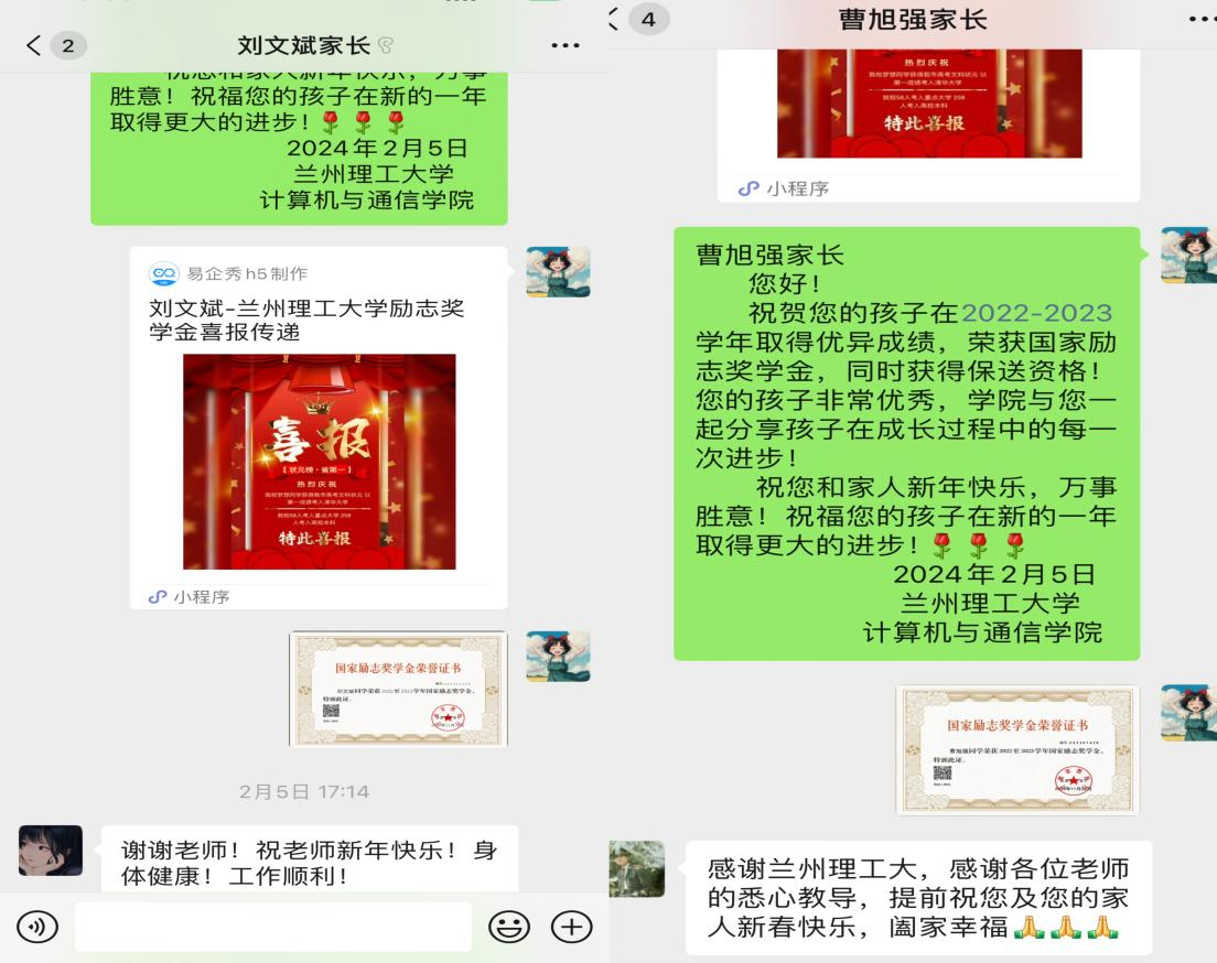 学生勤勉努力、刻苦钻研、积极进取,共有4人获得国家奖学金,75人获得国家励志奖学金。为表彰和鼓励学生,更是表达对家长的诚挚谢意,促进家校协同育人,学校党委学生工作部特意为获奖学生一一制作了精美喜庆的国家奖学金和国家励志奖学金喜报。