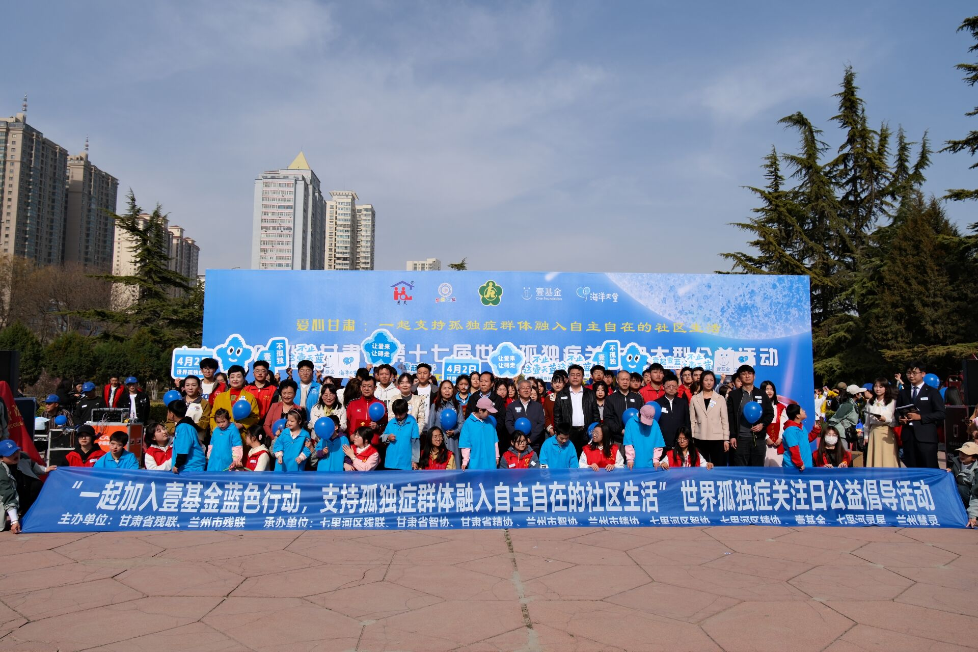 3月31日上午,第十七个世界孤独症日公益活动在兰州小西湖公园如期举行。甘肃省智力与残疾人亲友协会、市区各级残联、兰州慧灵、兰州灵星携手在兰各高校大学生志愿者,社会爱心公益组织近千人齐聚在小西湖公园共同开展主题为:“不止这一天蓝:全生涯服务,全方位关爱” 孤独症日主题活动。
