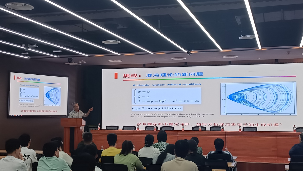 陈关荣教授首先从经典三体问题引入“混沌”研究的背景,并以故事的形式分享了混沌理论的发展历史,以及现代混沌理论的诞生。陈关荣教授表示,从“混沌理论模型”到“洛伦茨系统”,从“混沌系统”的提出再到“Chaos”概念的解释,混沌理论的研究强调了混沌现象在自然界和社会系统中的普遍存在,从初期的理论构建到后来的实证验证,混沌理论的发展历程充满了挑战与探索。