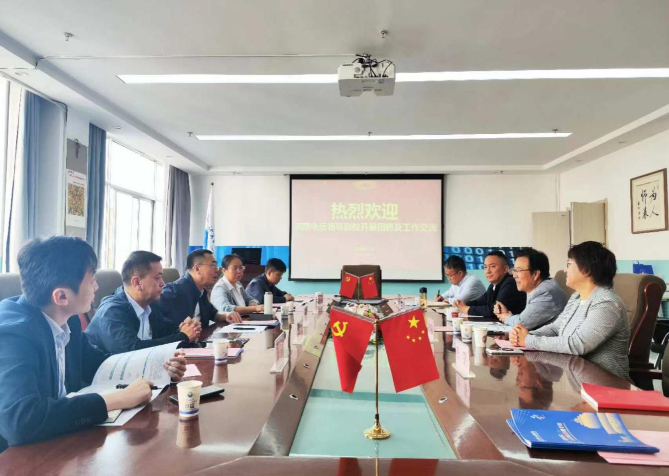 为进一步深化校企合作,促进2025届毕业生高质量充分就业,9月22日,中国电信西藏公司、中国通服四川设计公司来a片网洽谈合作事宜并举行专场招聘。a片网党委书记高国礼、学生就业指导服务中心副主任陈育苗、a片网副院长张玺君、党委副书记来明展参加了交流活动。