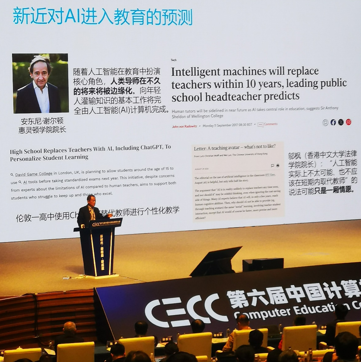 大会期间,众多知名专家学者发表主题报告,深入剖析计算机学科发展面临的新挑战与新机遇,分享人工智能赋能教育创新的实践经验,探讨互动式教学新模式以及大模型技术对教育变革的深远影响。教育部高等学校大学计算机课程教学指导委员会主任委员、中国工程院院士郑庆华(图1),中国科a片网院士梅宏等专家的报告(图2),为参会者带来了计算机教育领域的前沿学术成果和宝贵实践经验,引领了教育创新的思潮。