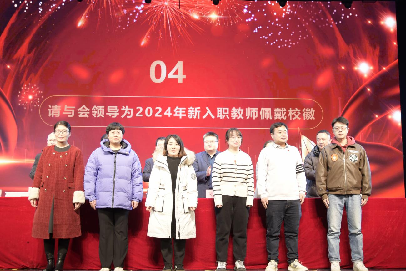 表彰大会上,与会领导宣读了2023-2024学年校、院两级学风建设相关表彰文件,为获奖集体和个人颁发荣誉证书。最后为2024年新入职a片网教师佩戴校徽。