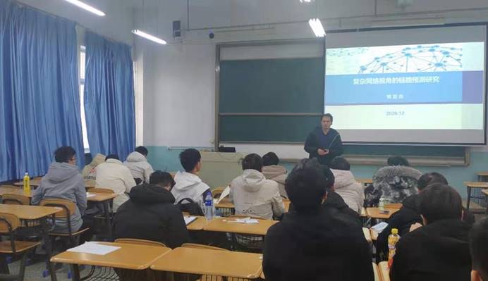 计算机技术专业部分研究生及软件工程专业部分本科生做了《复杂网络视角的链路预测研究》前沿学术讲座。