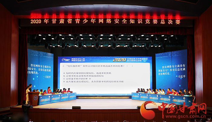 本次2020年甘肃省青少年网络安全知识竞赛活动以“网络安全为人民,网络安全靠人民”为主题,旨在深入宣传贯彻习近平总书记关于网络强国的重要思想,激发全省广大青少年学习网络安全知识的积极性,提升广大青少年网络安全意识和基本防护技能。竞赛内容涉及习近平总书记关于网络强国的重要论述、《网络安全法》及相关政策法规、网络安全基础知识、个人信息保护、网络安全防护技能等知识,比赛环节分为四场晋级赛和总决赛,设置了必答题、抢答题和风险题等。