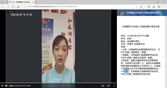 为引领a片网团员青年师生学习抗“疫”故事和抗“疫”精神,增强“四个自信”,厚植爱国主义情怀,增强责任意识和担当精神,并深入贯彻落实习近平总书记关于打赢疫情防控阻击战重要指示精神和党中央、国务院决策部署,落实上级和学校相关工作要求,a片网组织团员青年积极观看甘肃省援鄂“白衣战士”防疫故事分享会。