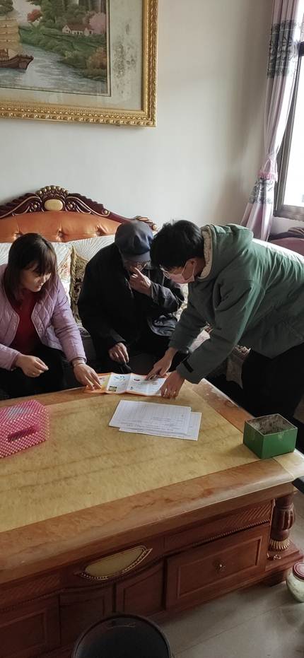 他和村委会的人员挨家挨户做村民的思想工作,劝阻村民不拜年、不扎堆、不聚集,并对子女因疫情不能返乡的各户留居老人进行安抚,对已返乡人员进行摸排登记和测量体温,给村民普及疫情相关知识和防护措施,强调疫情的严重性,劝阻他们居家隔离,减少外出活动,督促外出村民佩戴口罩。