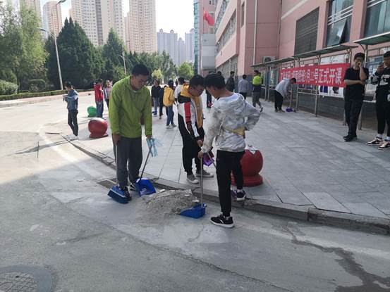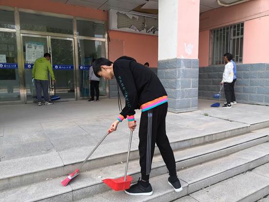 习主席曾经说过:“绿水青山就是金山银山”。良好的校园环境能够使学生更舒适的学习、生活。经过负责人合理分工、安排,志愿者们有条不紊的进行了打扫工作,为迎接百年校庆贡献出自己的力量。活动期间,四处可见同学们忙碌的身影,有的在捡拾花坛里的垃圾,有的在清扫路边的落叶,有的在清理教学楼教室卫生,有的在擦拭走廊上的瓷砖,有的在整理排齐桌椅。经过大家的共同努力,校园环境焕然一新。