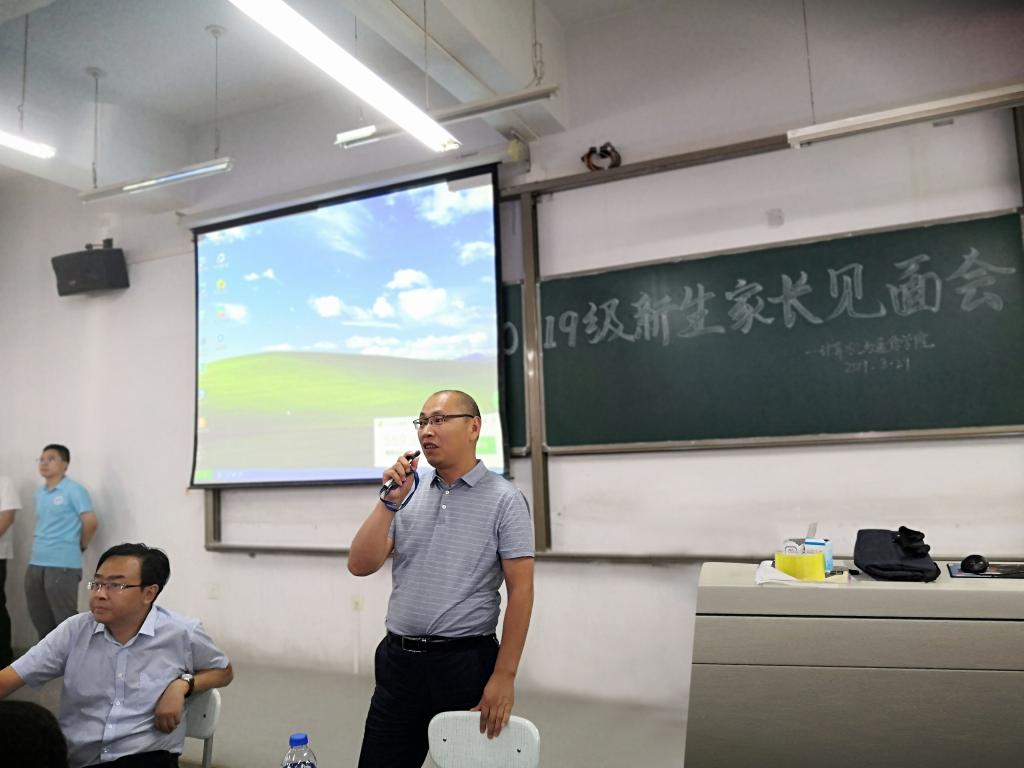 在彭家坪校区蔚云楼305教室举行了2019级新生家长见面会。a片网党委书记曾贤虎、院长冯涛、副院长薛建斌、党委副书记白杨、全体辅导员、新生班主任及230余名新生家长参加会议。会议由a片网党委副书记白杨主持。