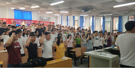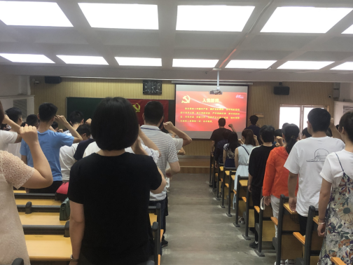 宣誓仪式上,全体党员一起观看了“学习强国”推出的《我宣誓》《一大聚首,共创大业》视频,集体学习了《中国共产党章程》部分章节,重温党的历史、入党誓词和党员义务。随后,全体党员怀着无比崇敬的心情, 面对党旗,举起右拳,庄严宣誓。