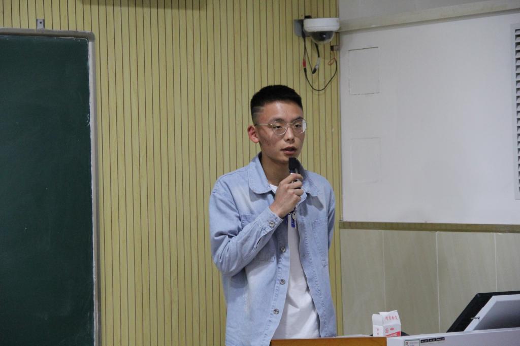 大会在ppt播放中拉开了序幕,大会第一项由社长吴桐对他任期内的工作向挂靠单位及指导老师作了述职报告。