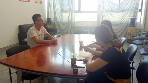 下午三点,选拔正式开始。工作人员安排学生签到并组织学生进入办公室开始进行选拔。选拔过程中,学生首先自我介绍;其后,马晓跃老师和张乃心老师就新生入学的学习,生活等方面的问题向参加此次选拔的学生提问。