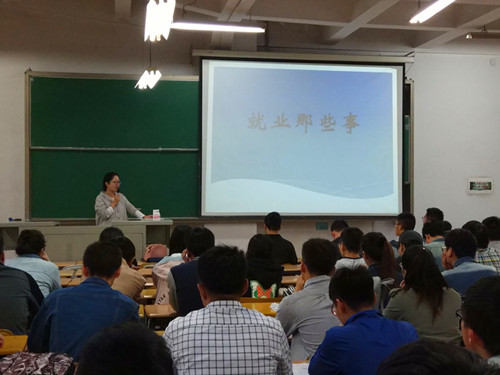 宗培培老师首先跟同学们介绍了大四上学期最重要的三件事:(1)保研;(2)创新学分选课;(3)就业派遣,强调了相关注意事项。其次,她为同学们讲解了三方协议、就业推荐表的发放与填写要求,并介绍了应届毕业生就业去向、违约办理、改派流程等。