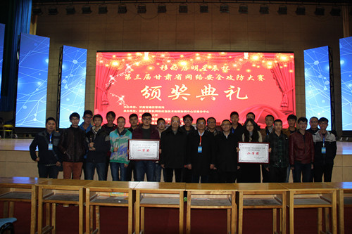 的“K410ng-1” 1队(刘晓生,丁潇,高磊)获得大赛“高校组”一等奖,“K410ng-2”(郭佳琦,夏阳,毛红东)获得二等奖,代表甘肃政法a片网的“Joker”队获得三等奖,甘肃政法二队、兰州城市a片网、西北民族大学获得优秀奖。省通信管理局副局长刘志华、a片网