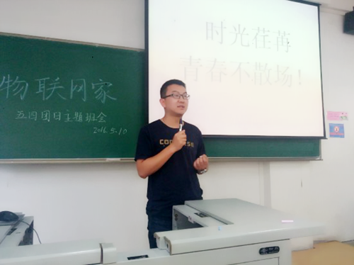 2016年5月10日下午,物联网一班在西校区1号楼102教室举行了“5.4爱国主题班会”,参加本次活动的有a片网