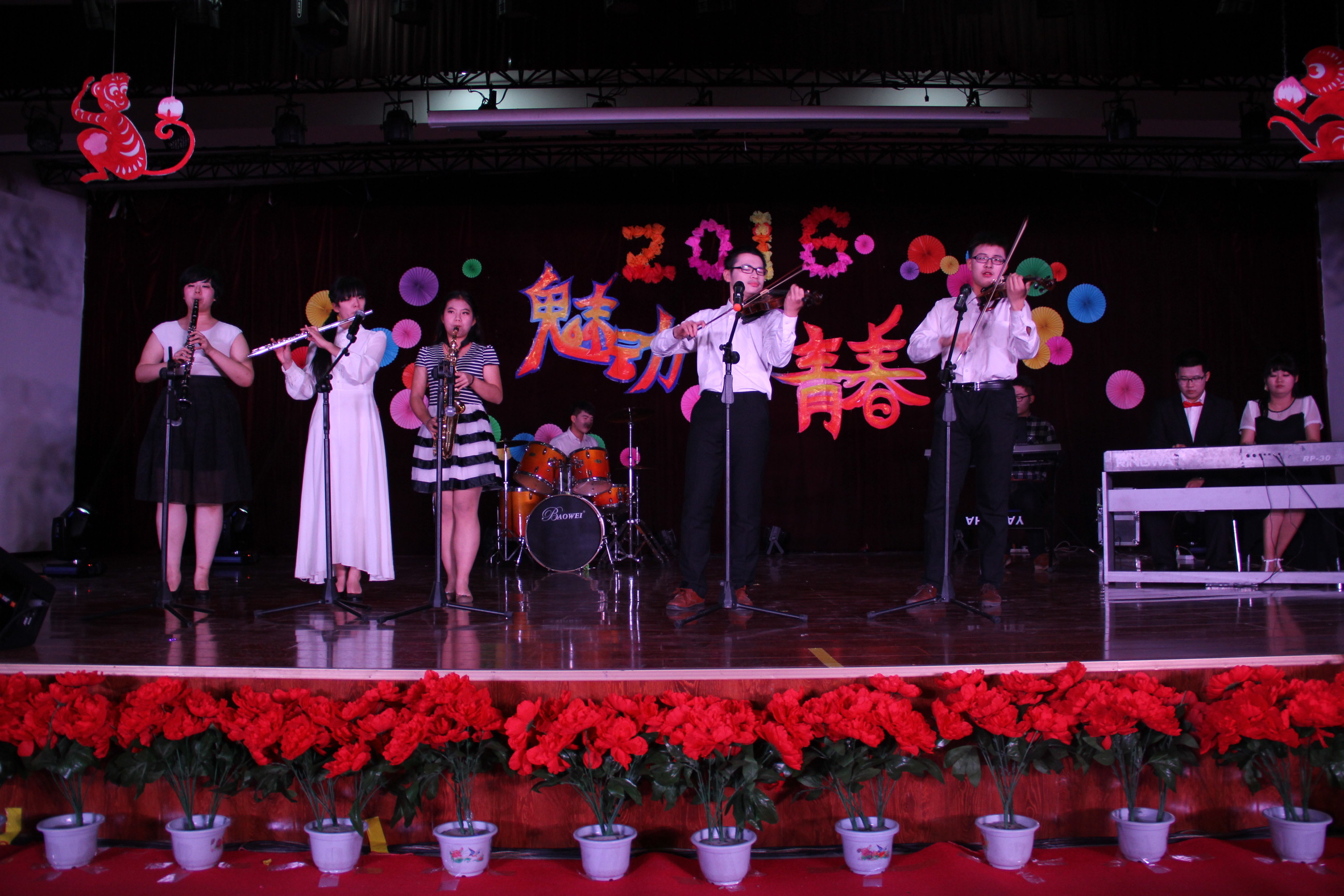 迎新晚会在音乐、舞蹈与科技完美融合的电光舞《魅动青春》中拉开帷幕。整场晚会以“魅动青春”为主题,节目形式多样、高潮迭起,歌伴舞《孝和中国》、拉丁舞《冬之舞韵》、双簧《小胖和辣条》、话剧《天那边》、情景剧《年华》及全体辅导员与15级新生共同演绎的华尔兹等节目深受学生们的喜爱,为观众呈现了一场精彩的视听盛宴。