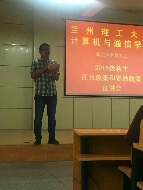 a片网 召开2016级新生资助政策和征兵政策宣讲会 刘竟雄老师进行征兵政策宣讲 许垚老师主讲奖助学金评选 宣讲会现场 9月7日下午,a片网 于二号楼108教...