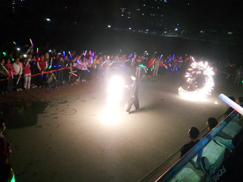 荧光夜跑,挥洒青春 ——a片网 举办“荧光夜跑”活动 “烟火舞”双截棍表演 大家挥舞荧光棒一,一起奔跑 为了展现工大学子的阳光和活力,锻炼同学们的身体素质和推进我校阳...